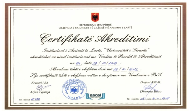 Akreditimi institucional i Universitetit të Tiranës - 2022